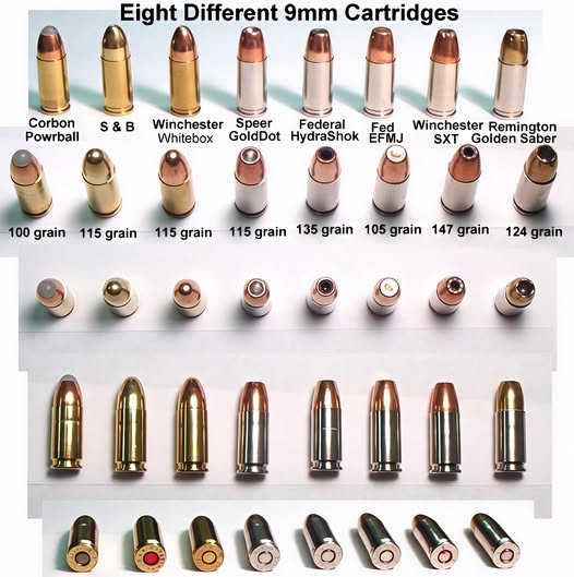 שמונה סוגים שונים של תחמושת בקוטר 9 מ”מ מיצרנים שונים, כל אחד עם משקל ועיצוב שונים של כדור, בעיקר להגנה עצמית או לאימוני ירי. סוגי תחמושת ומשקלים של כדורים המחסניות המוצגות הן כולן תחמושת פרבלום 9×19 מ”מ, אך כוללות סוגי כדורים ומשקלים שונים, שהם גורמים מרכזיים בביצועיהן. כדור קורבון פאוורבול: 100 גריין S ו-B (סלייר […]
