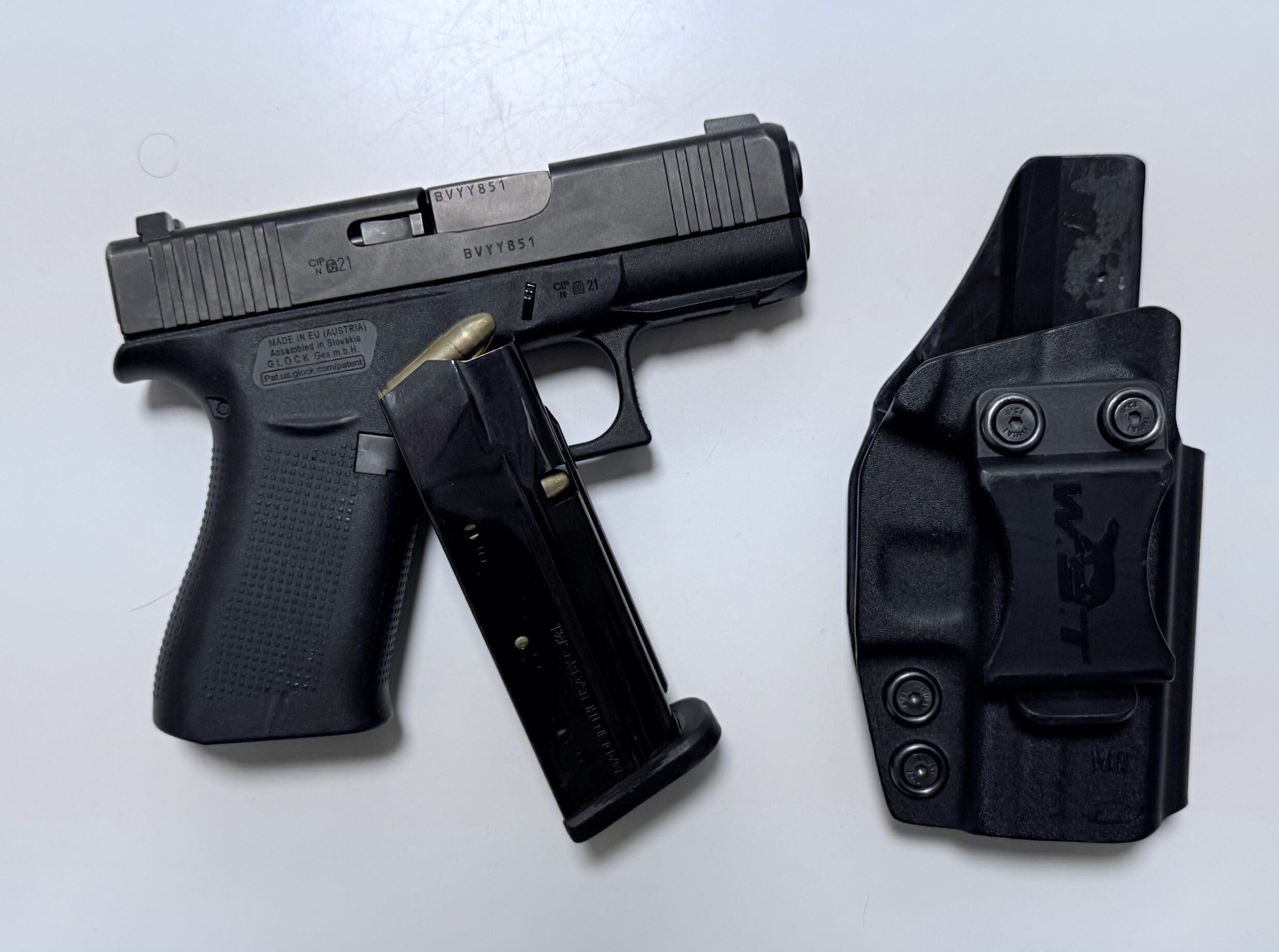 גלוק 43x דור 5 , עם כוונות זוהרות של מפרולייט , תפס מחסנית מוגדל , ומחסנית 15 כדור של שילד ארמס , נמכר עם ארגז מקורי , 2 מחסניות מקוריות , ונרתיק .