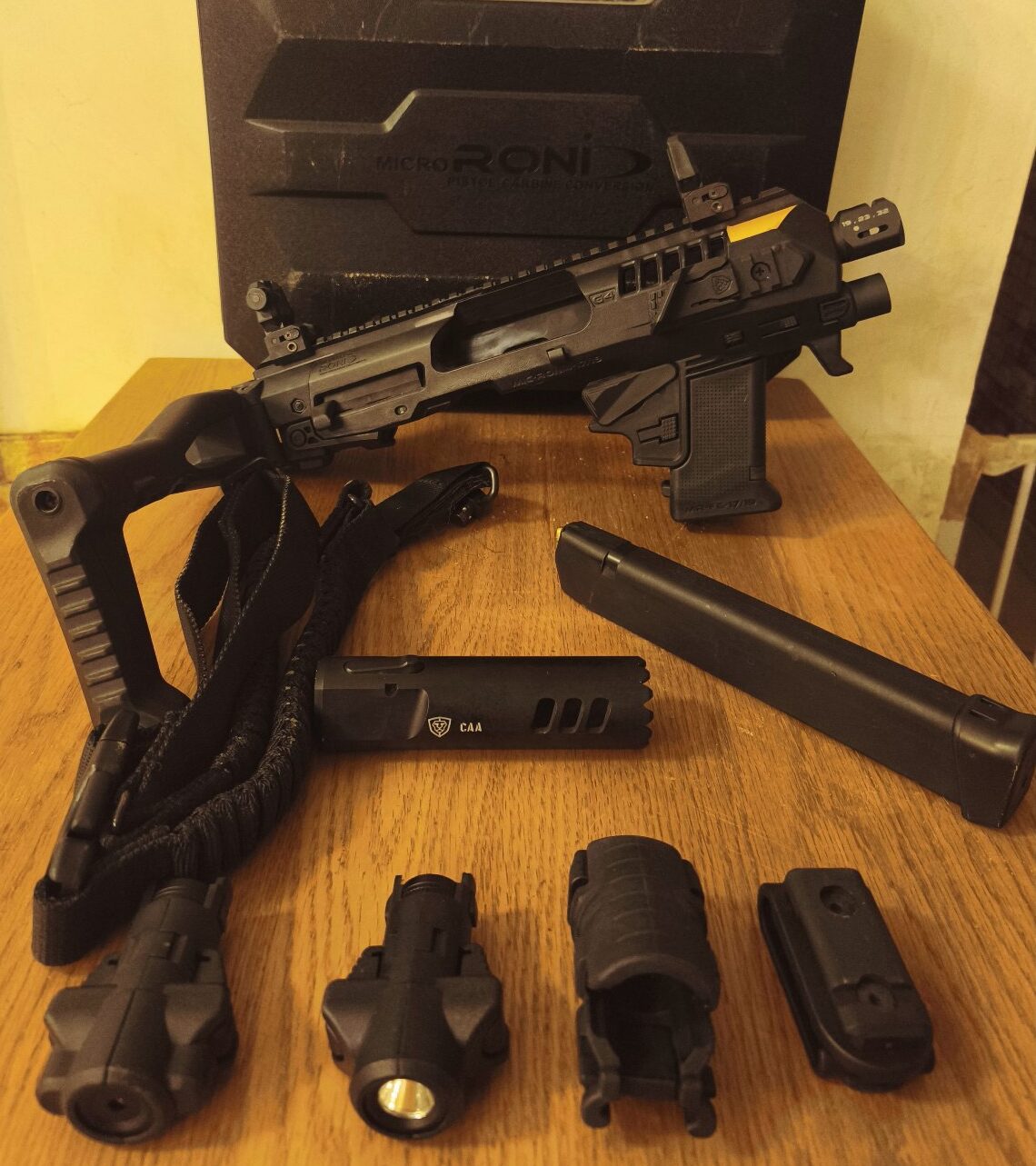 מיקרו רוני 4x לגלוק: תוספות: מזוודה קשיחה מקורית עם כיתוב roni כוונות קופצות מקוריות caa תומכי אגודל ימין ושמאל למסילות פיקיטיני רצועת באנג'י עם טבעת 360 מעלות קומבו סט פנס מקורי + לייזר אדום מקורי קומפנצטור שובר חלונות