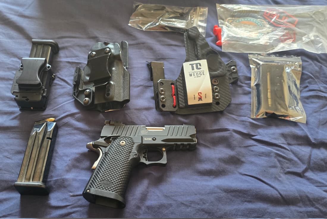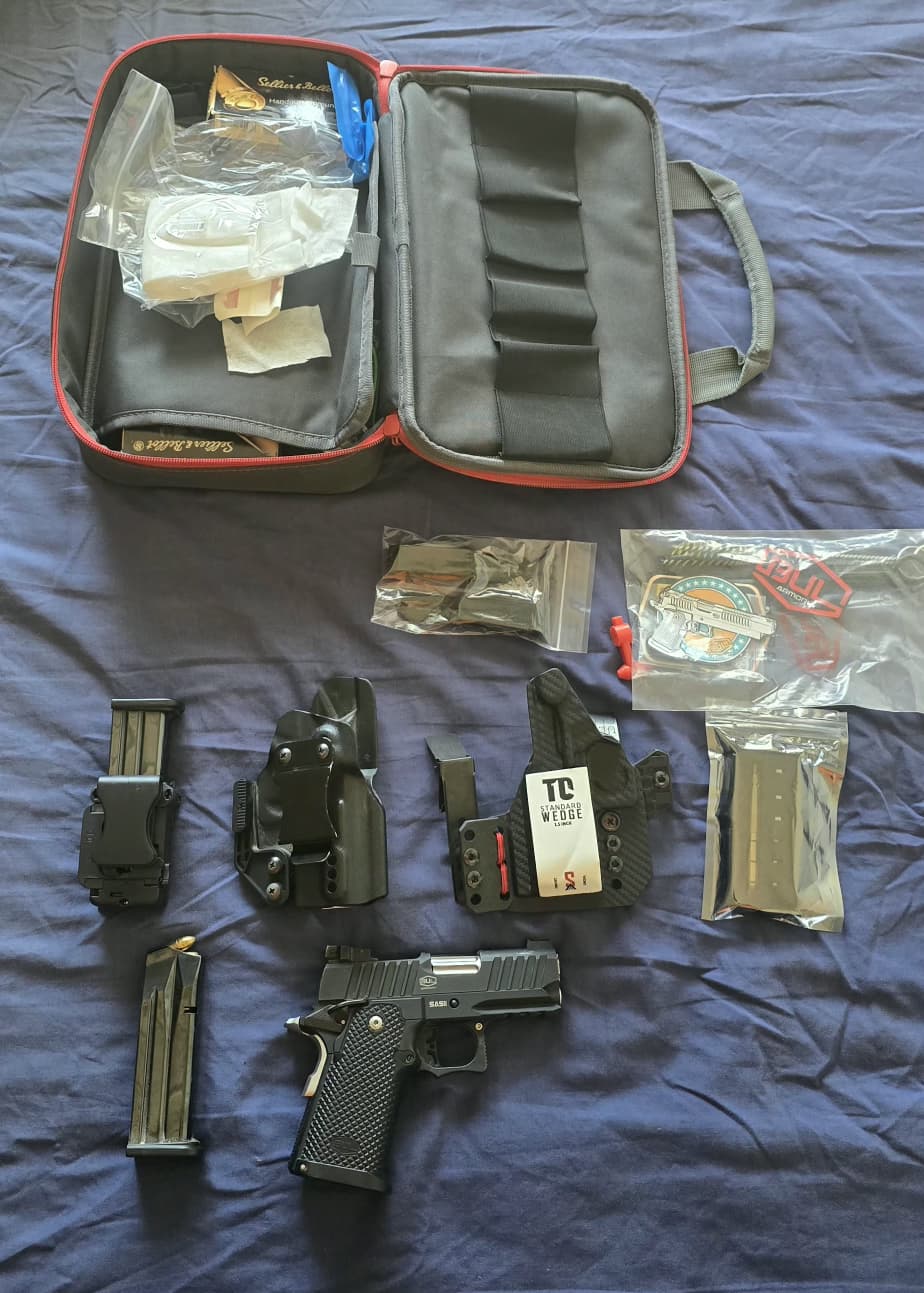 BUL SAS UL 2 , אקדח חדש שירה רק 20 כדורים (אפילו לא עשיתי עדיין את הרענון הראשון) ,  אני מאחסן אותו בבול ארמורי בתל אביב , מגיע עם שני נרתיקים שאחד מהם הוא Tier 1 Xiphos Elite + Foam Widgets , והשני לא זוכר מה שקונים בבול ארמורי . (בעקבות רילוקשיין)