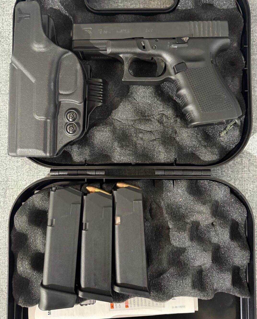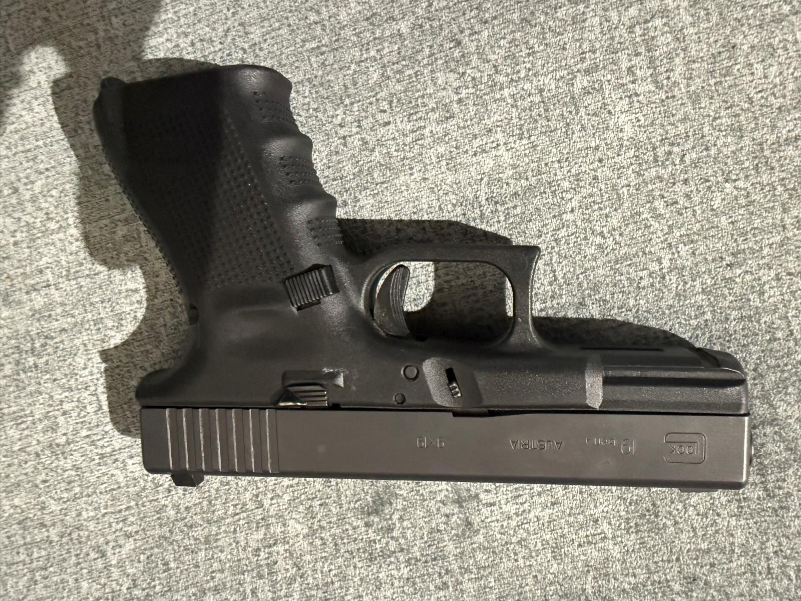 אקדח גלוק 19 דור 4 נמכר תוספות : 1. כוונות לילה (מפרו) 2. הדק מינוס 3. עצר מחלק מוגדל 4. מחסנית לשונית כתומה נוספת