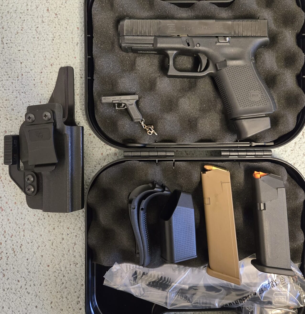 – 3 מחסניות, 15 כדור, 15 עם תוספת ל17 ומחסנית בצבע טאן של 17.