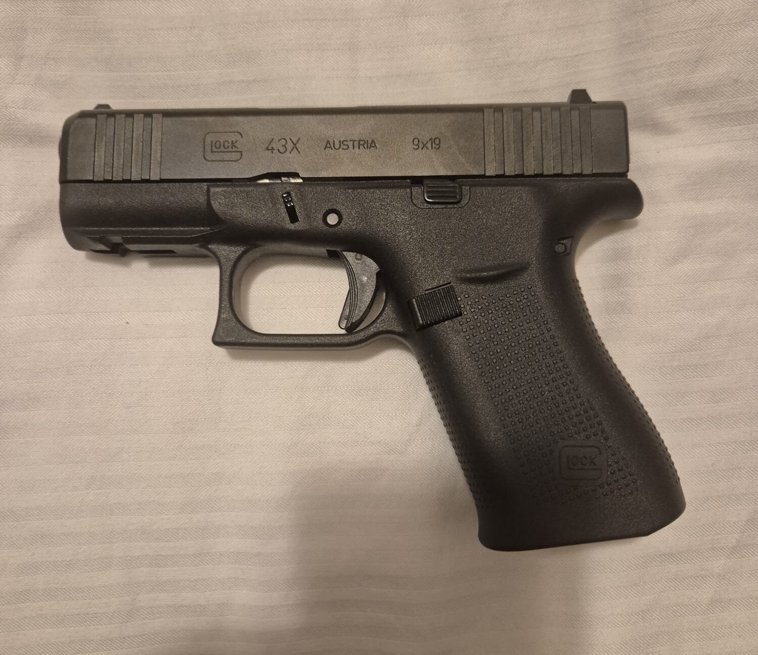 גלוק 43X הוא אקדח תת – קומפקטי פופולרי , הידוע בשילוב בין פרופיל דק ונוח לנשיאה סמויה אחיזה יחסית יחסית ותכולת מחסנית סטנדרטית של 10 כדורים .