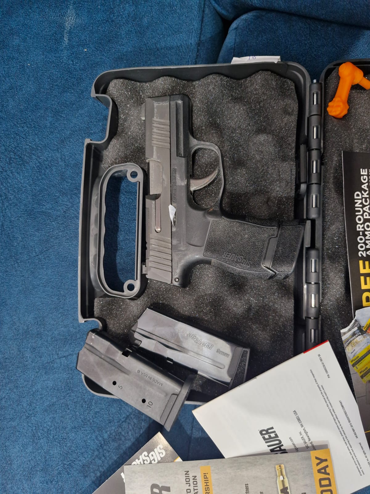 אקדח SIG SAUER P365 . נקנה לפני שנתיים . ירה 150 כדור סה”כ . האקדח במצב מצויין , מגיע עם 50 כדורים , 2 מחסניות סטנדרטיות , מחסנית מוגדלת (12 כדורים) , פונדה וכספת .